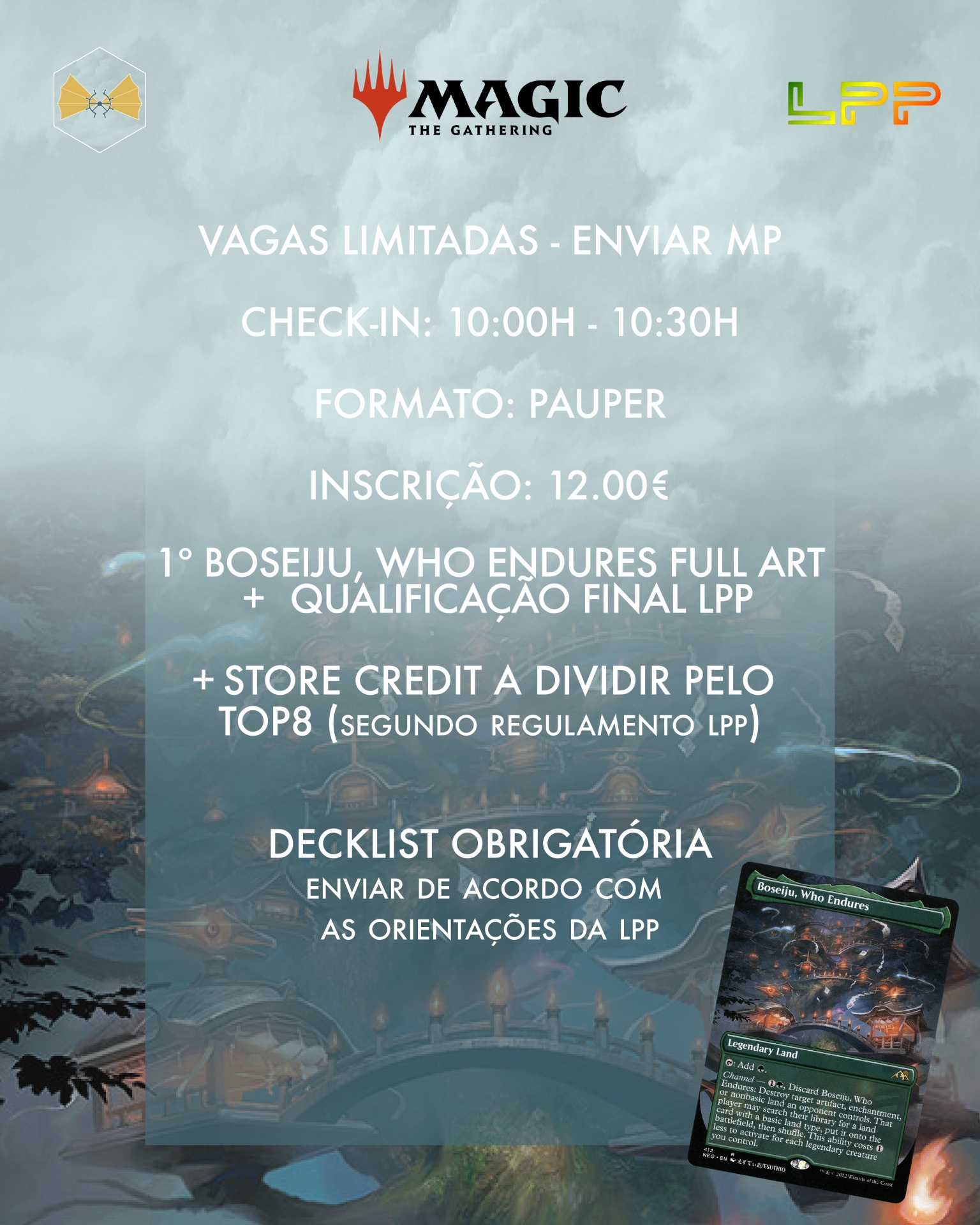 Todos os detalhes destes eventos podem ser encontrados no nosso Facebook e Discord e nas redes sociais da Liga Portuguesa de Pauper 😎