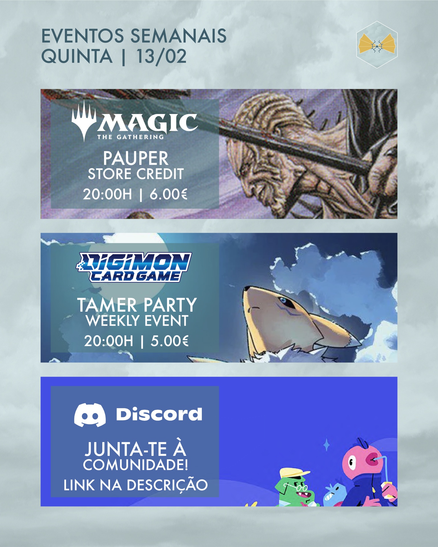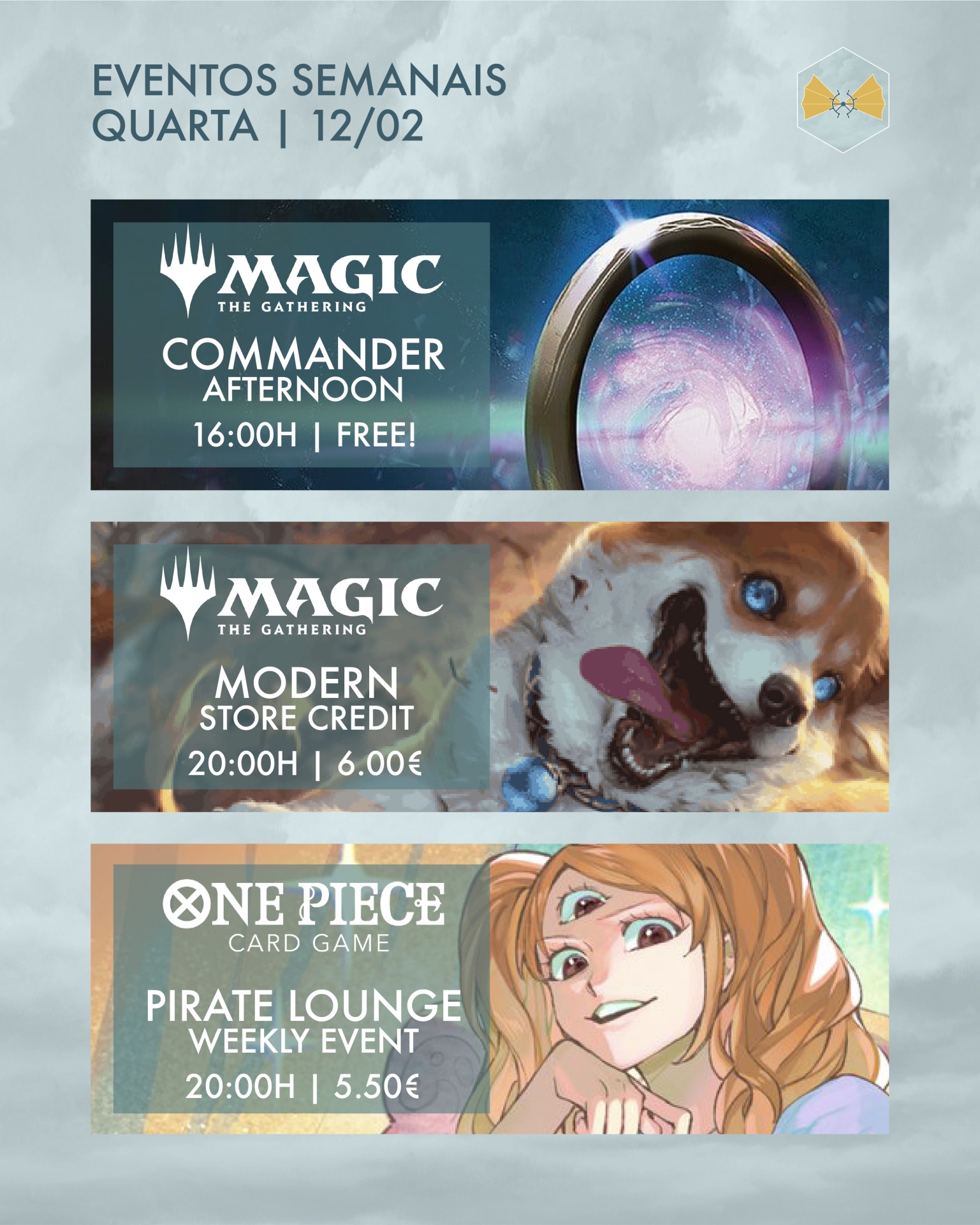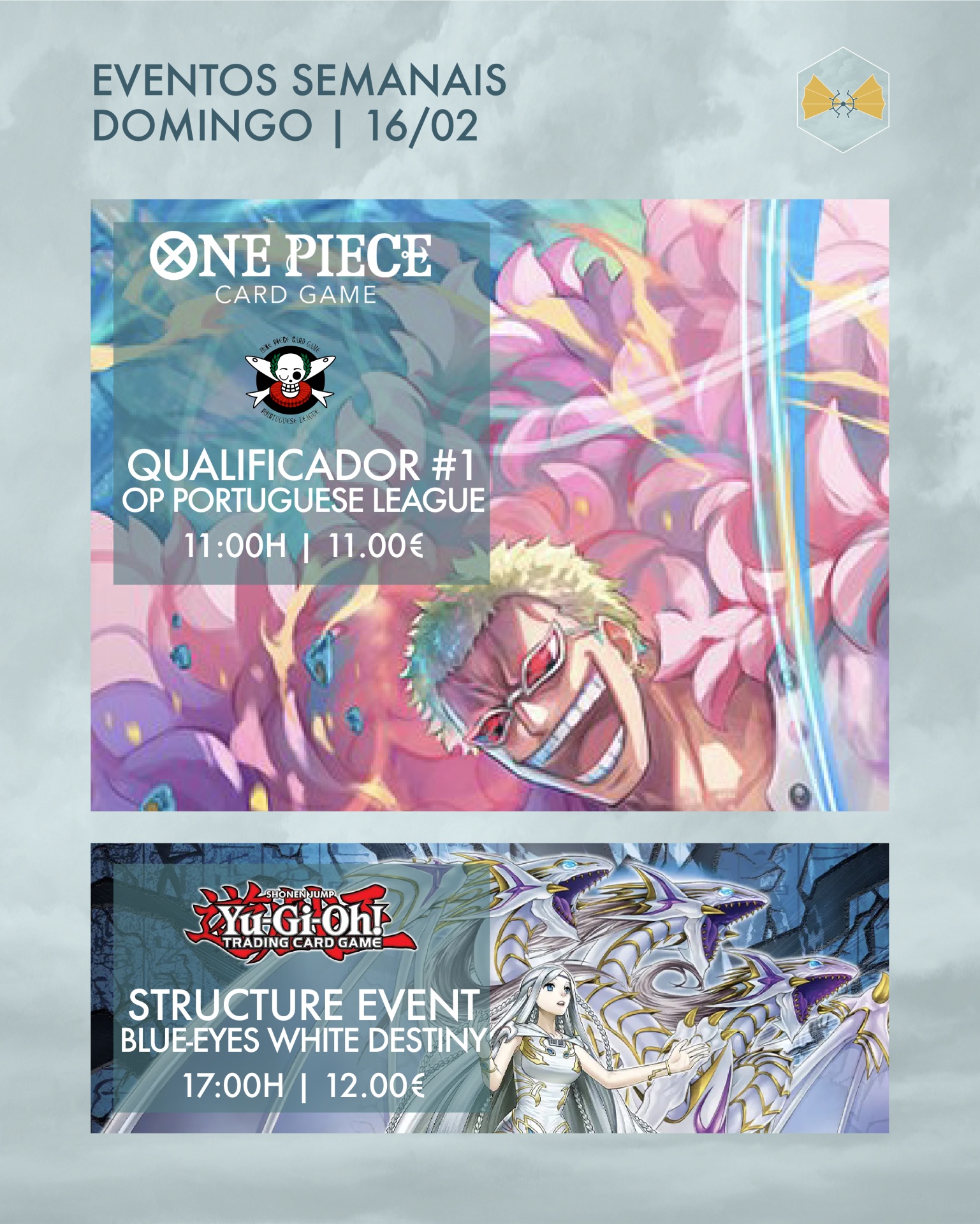 Com um Sábado e Domingo dedicado a dois super Qualificadores, temos um calendário reduzido com Magic: the Gathering, One Piece, Digimon e Yu-Gi-Oh 🔥