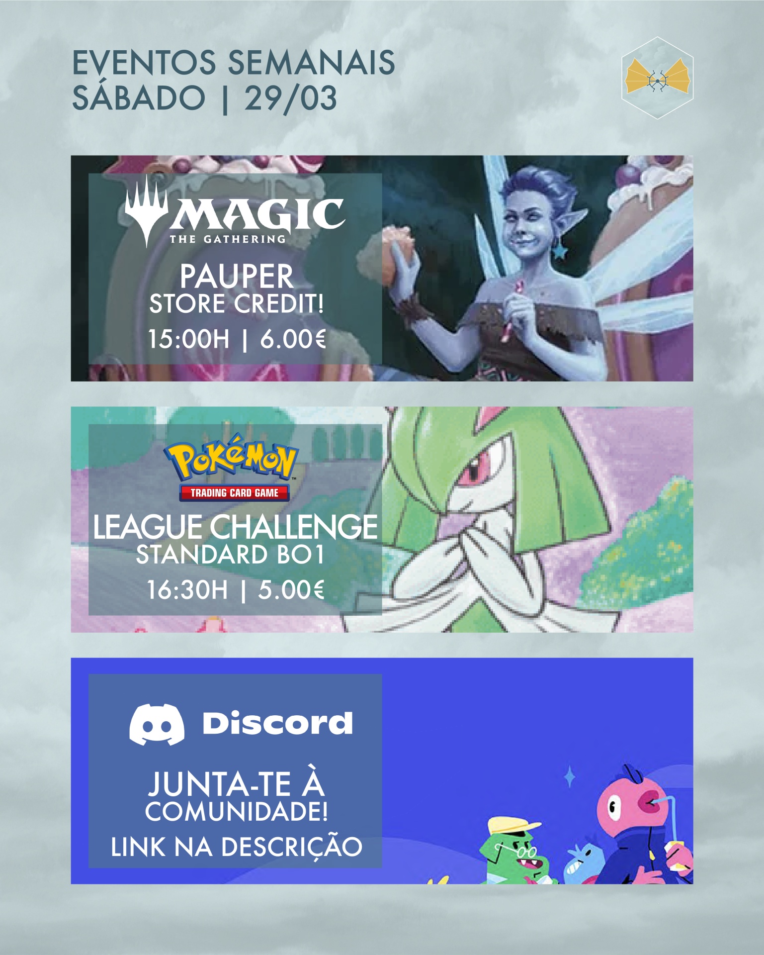 Para mais informações, consulta os detalhes de todos os eventos no nosso Facebook e Discord:
