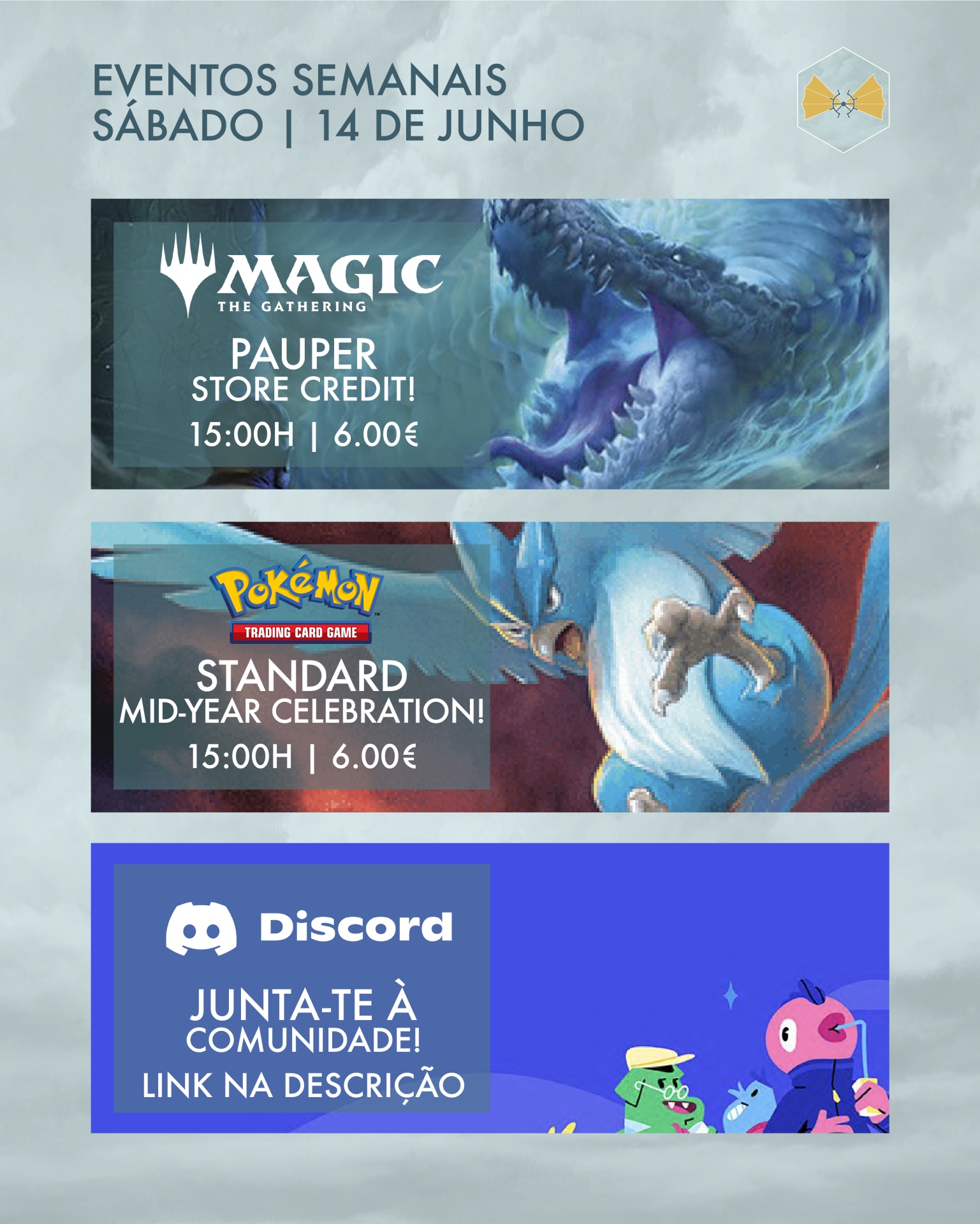 Para mais informações, consulta os detalhes de todos os eventos no nosso Facebook e Discord: