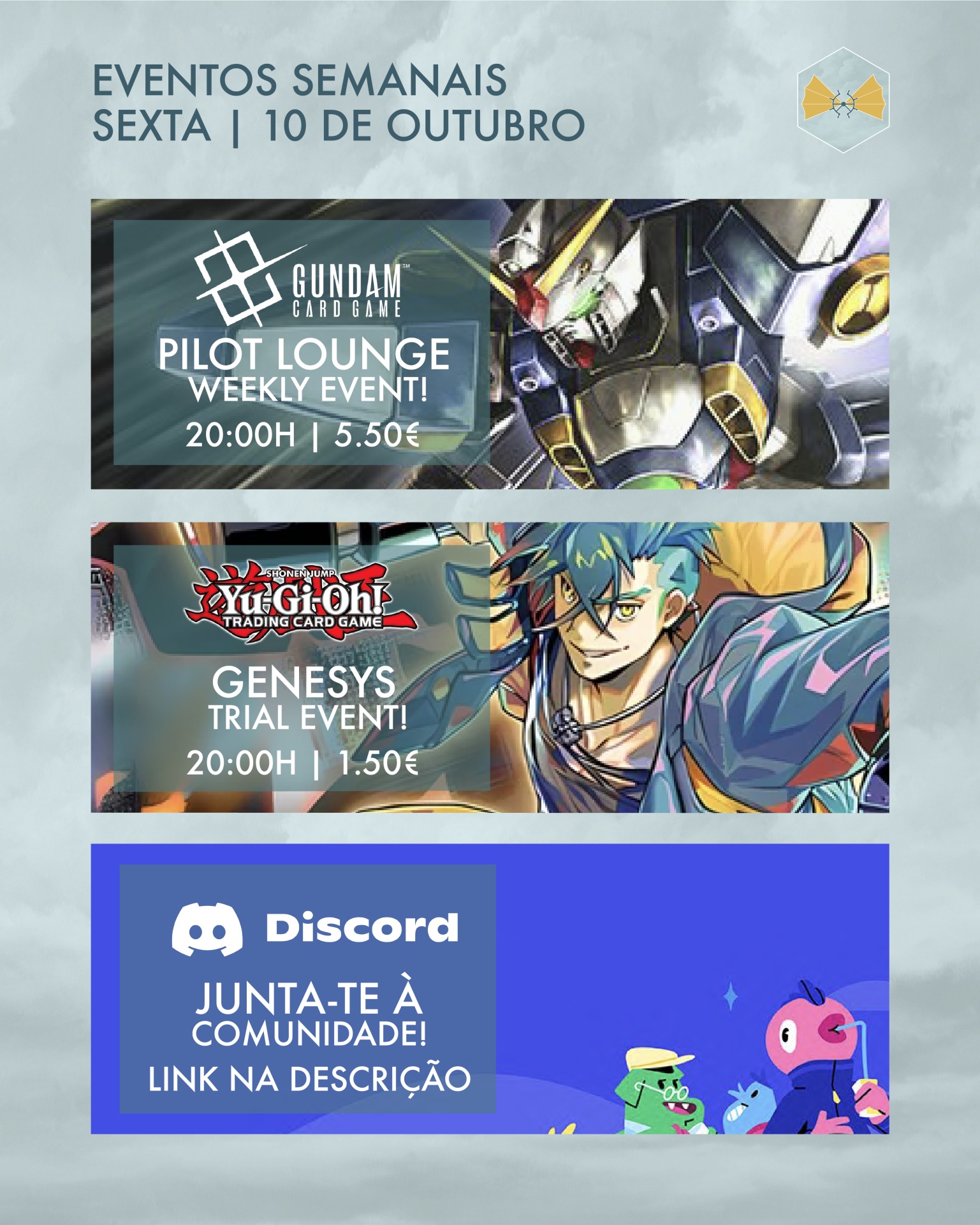 Para mais informações, consulta os detalhes de todos os eventos no nosso Facebook e Discord: