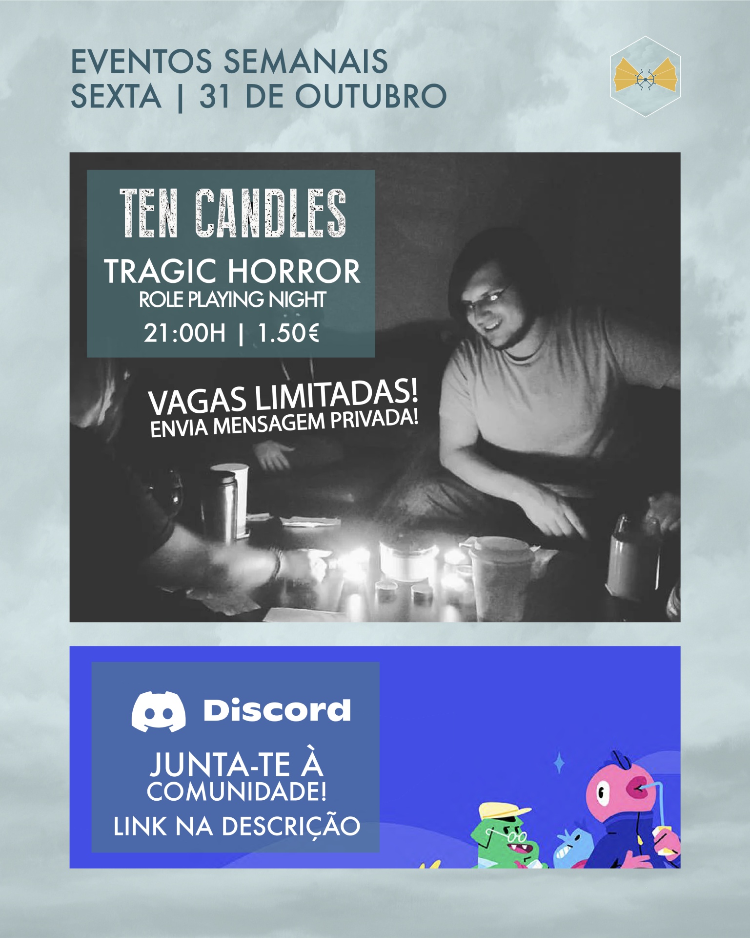 Para mais informações, consulta os detalhes de todos os eventos no nosso Facebook e Discord: