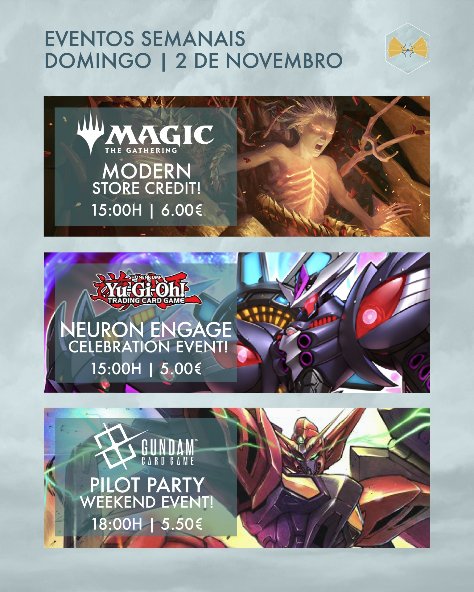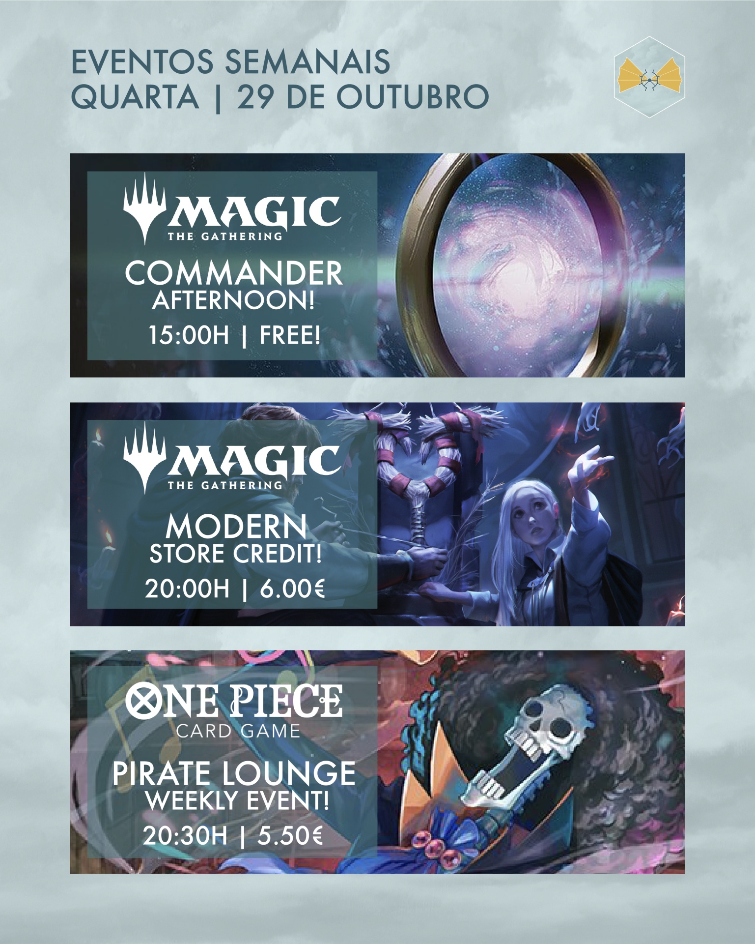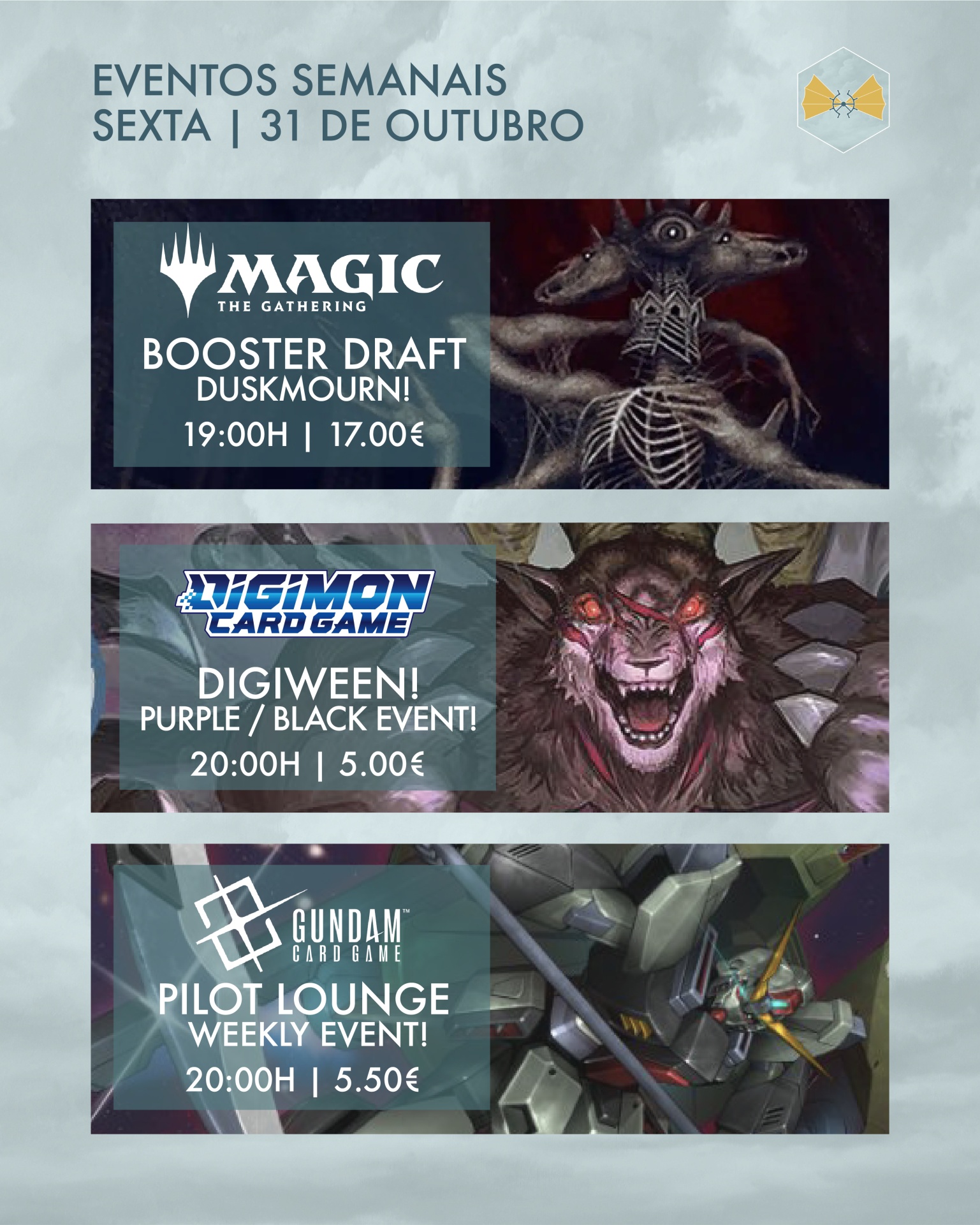 Mas antes da loucura do fim-de-semana há uma noite de Halloween planeada - com eventos temáticos no Magic e Digimon e uma sessão de Role Playing Games arrepiante! 🎃