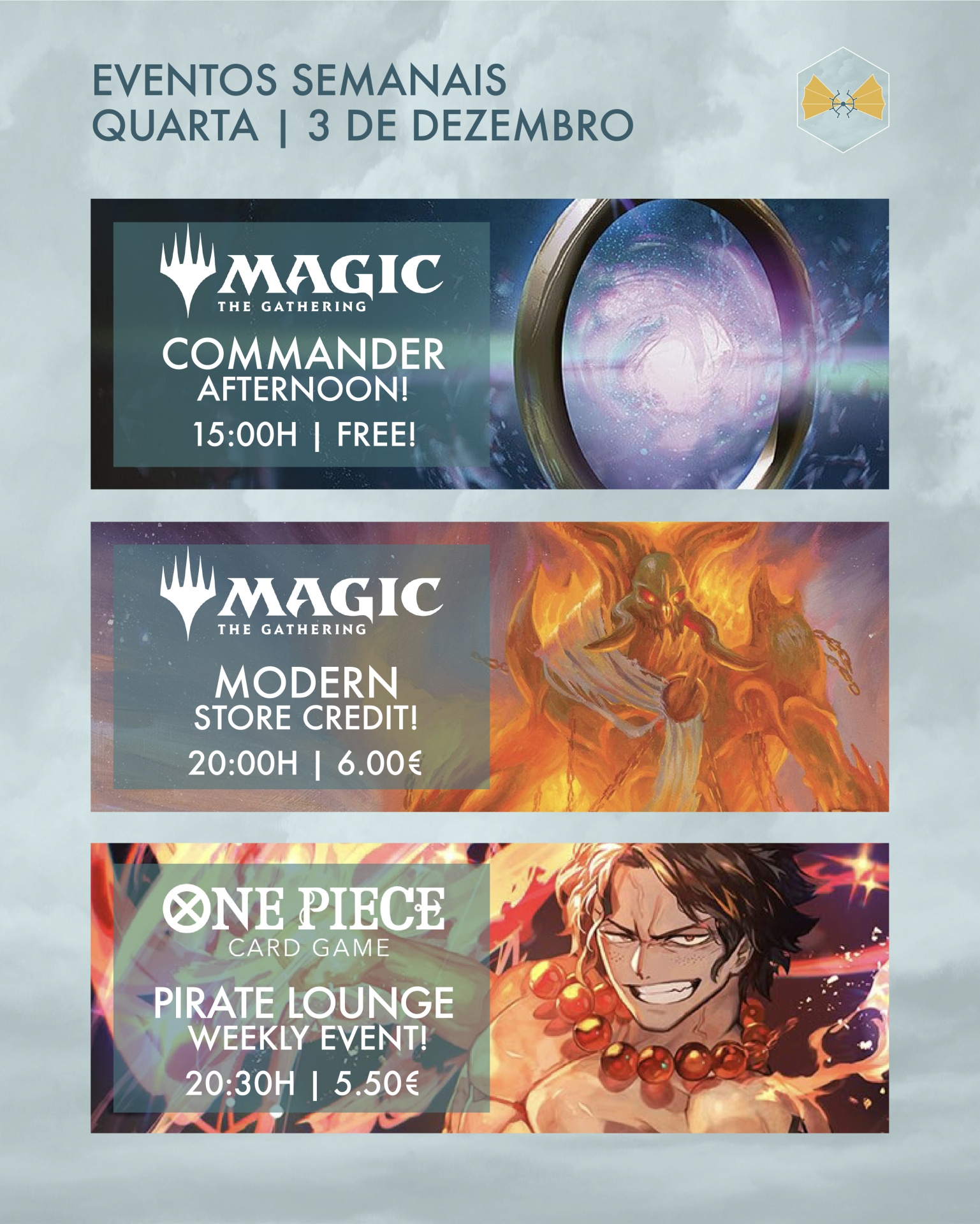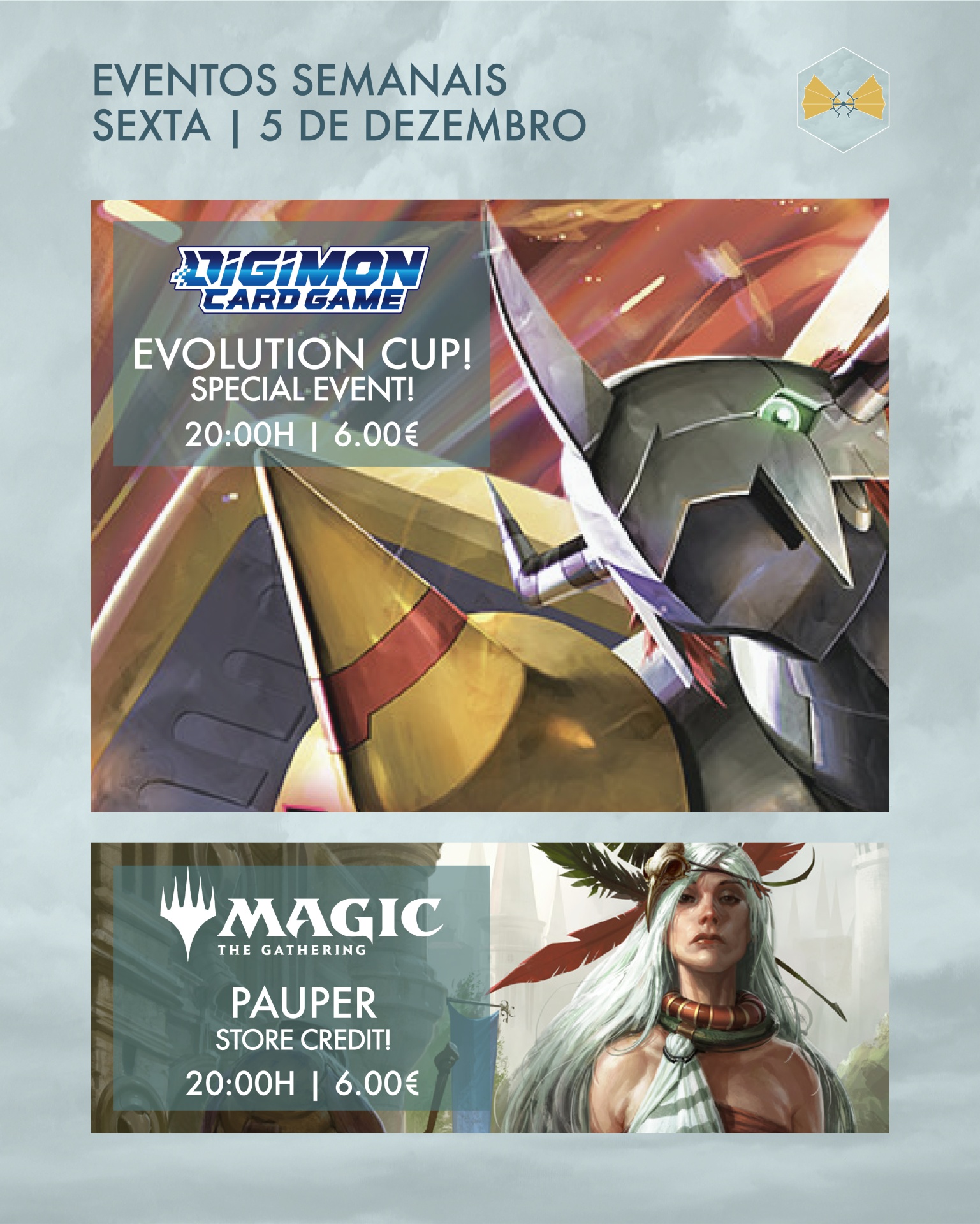 Há eventos super especiais nos teus TCGS favoritos - Digimon recebe a última Evolution Cup do ano esta Sexta e damos arranque aos Summoners Skirmish mensais no Riftbound já no Sábado de manhã! ⚔️