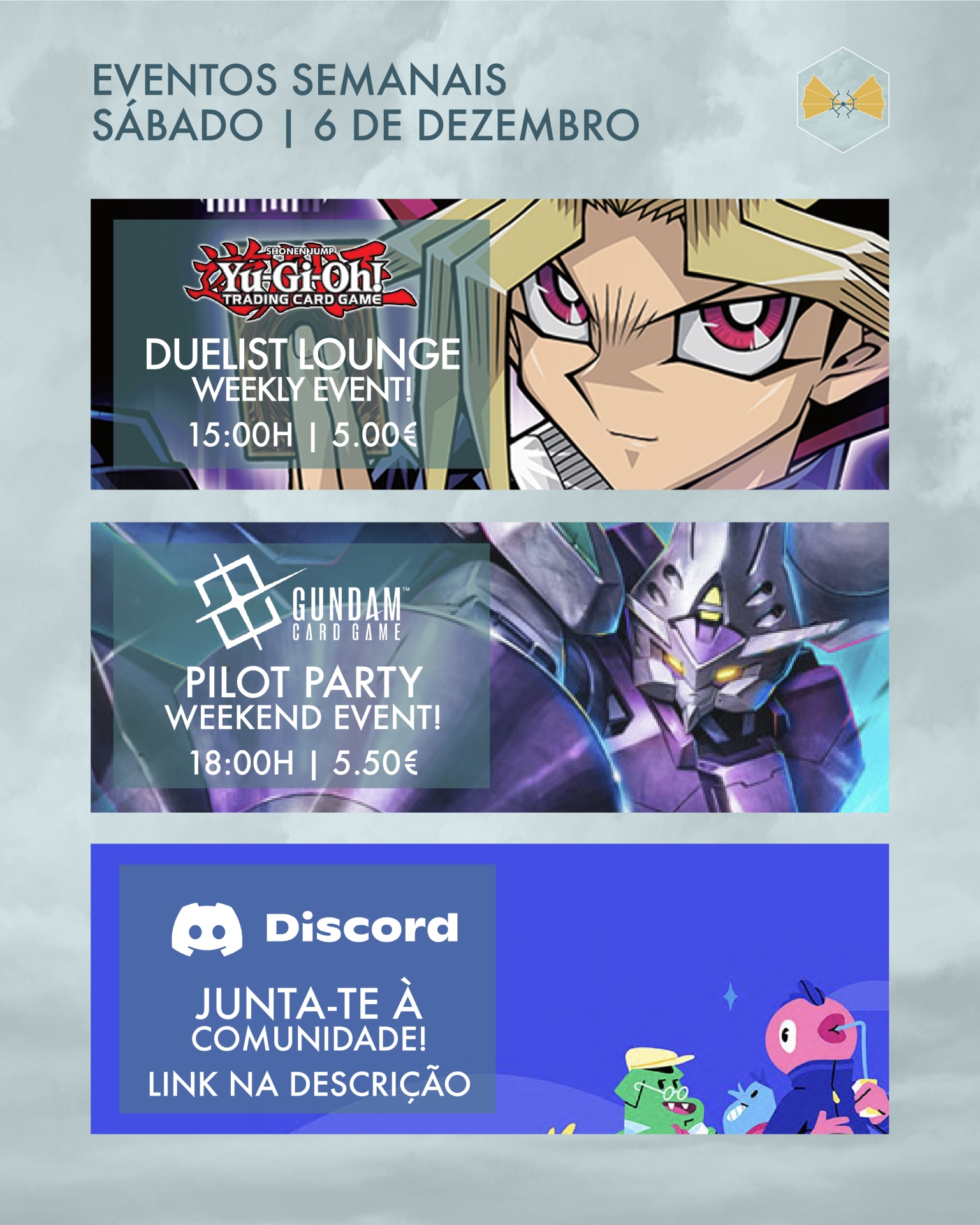 Para mais informações, consulta os detalhes de todos os eventos no nosso Facebook e Discord:
