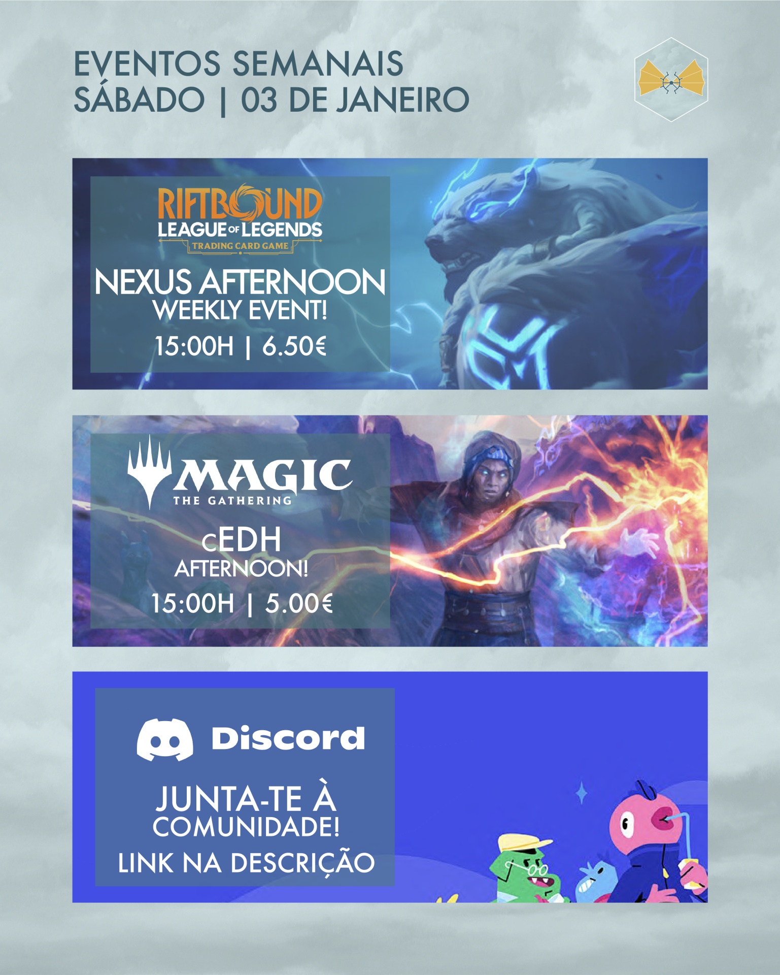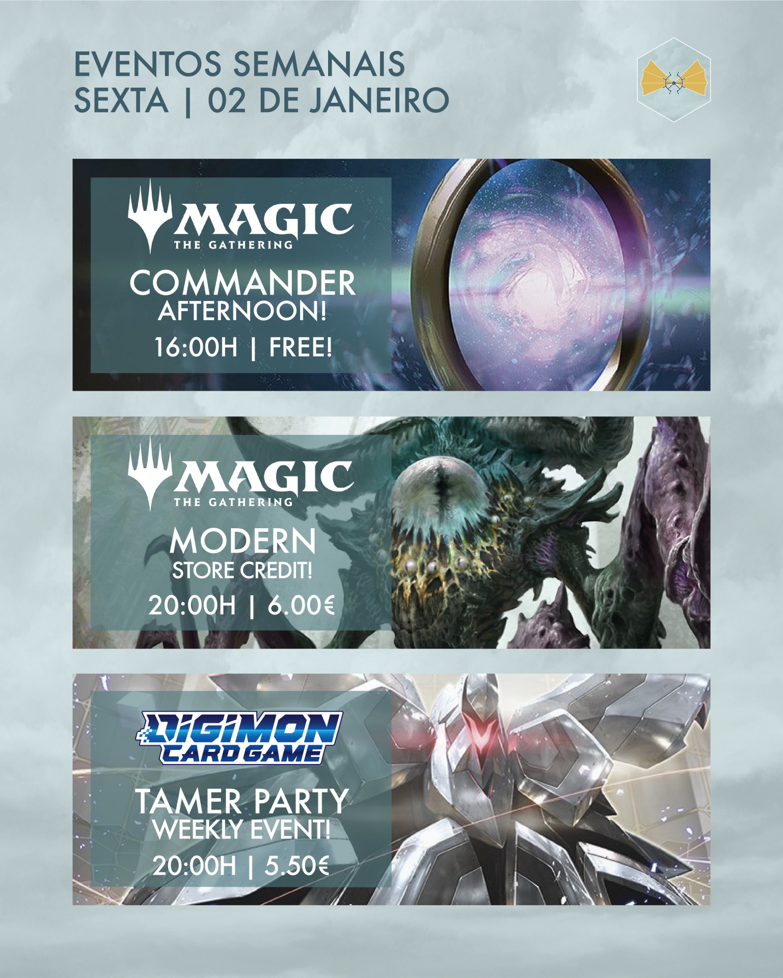 O ano pode estar a mudar, mas os eventos semanais da Weatherlight vão continuar a todo o gás - com um 2026 que promete! 👀