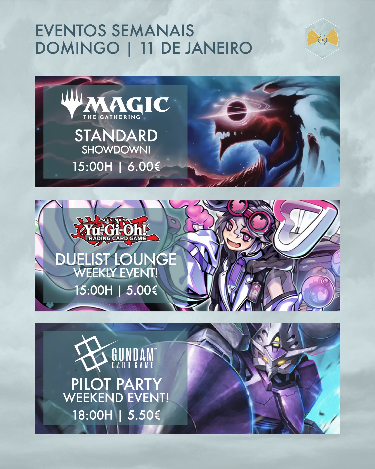 De One Piece a Riftbound, com Magic, Pokémon, Digimon, Yu-Gi-Oh e Gundam a juntarem-se à festa, há espaço para todos os teus hobbies favoritos! 💙