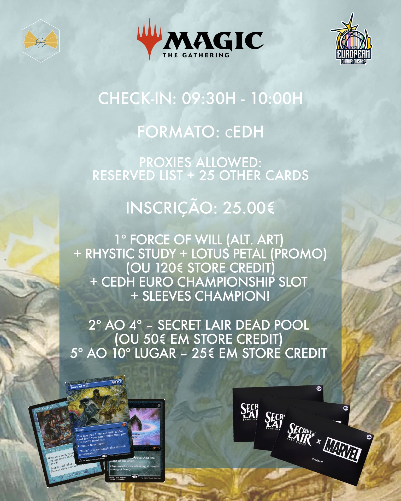 Sábado, Dia 27 de Setembro, o caminho para o cEDH European Championship passa pelo Alentejo com o nosso Invitational Event da cEDH Portuguese League! 🏆
