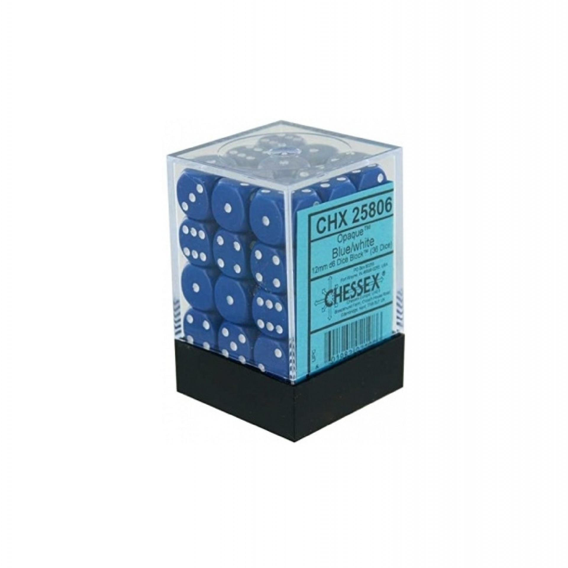 Chessex Opaque 12mm D6 with pips Dice Blocks (36 Dice) - Blue/white
