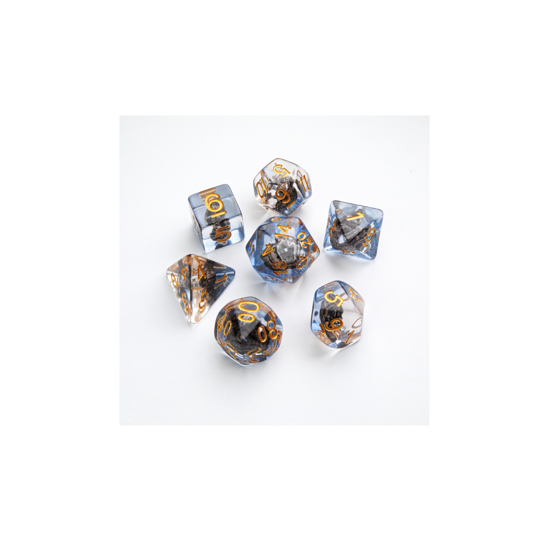 - Set of 7 premium quality resin dice; - EMBARCED SERIES: funny and unique item in each die; - Pack contains D4, D6, D8, D10 (10 and 00), D12 and D20; - All dice with smooth round edges; - Suitable for a cariety of roleplaying games and the like.