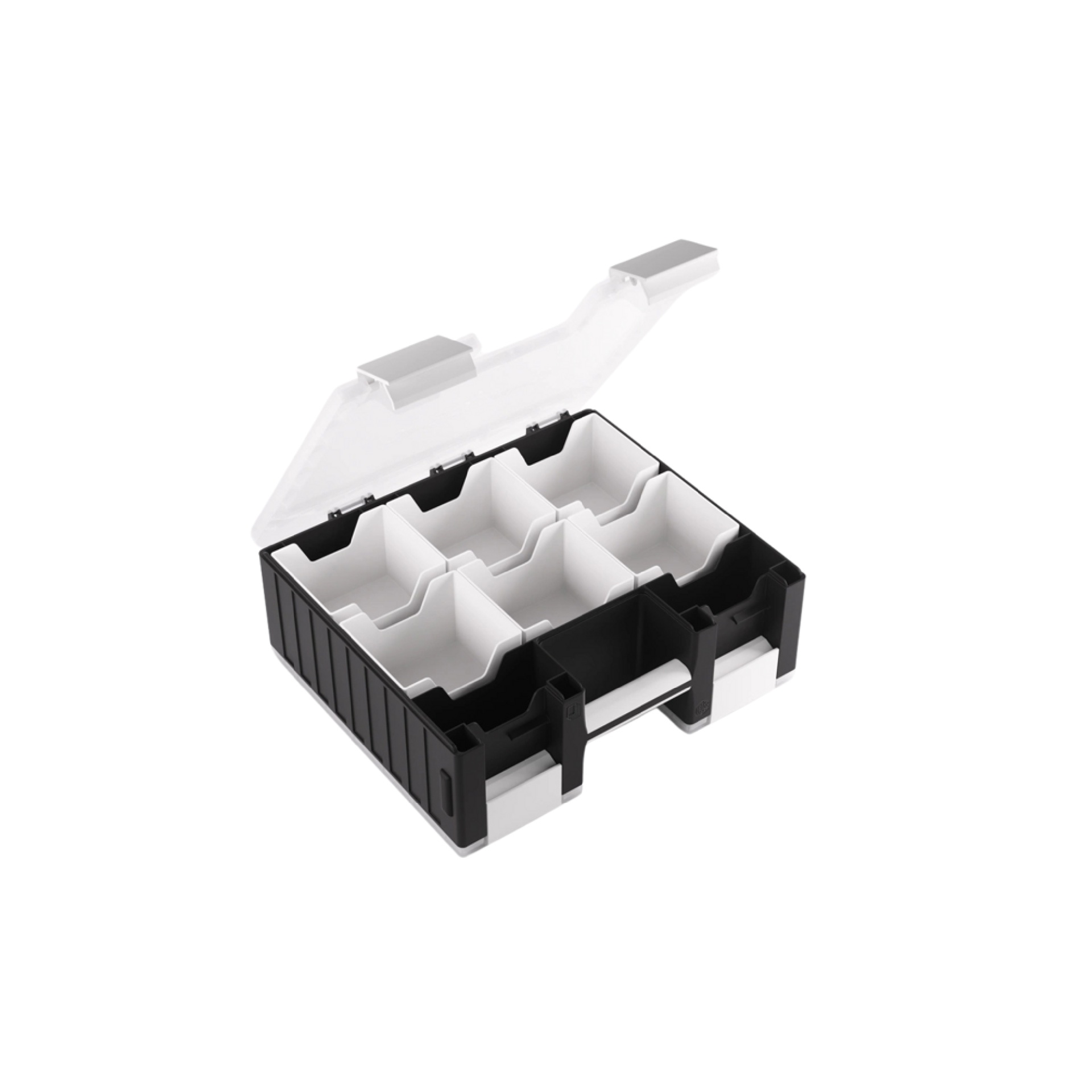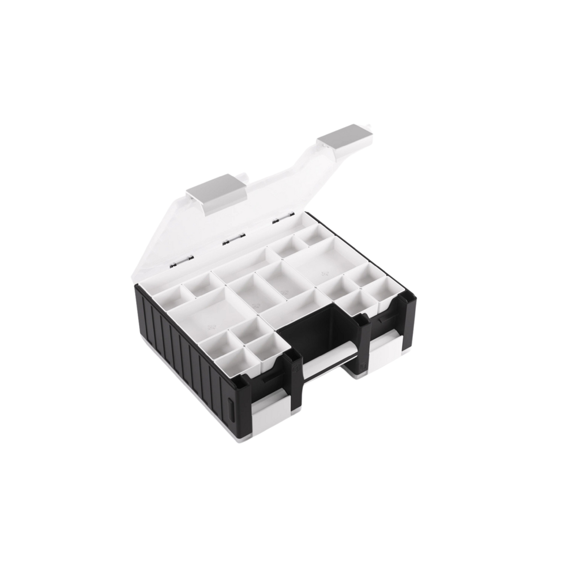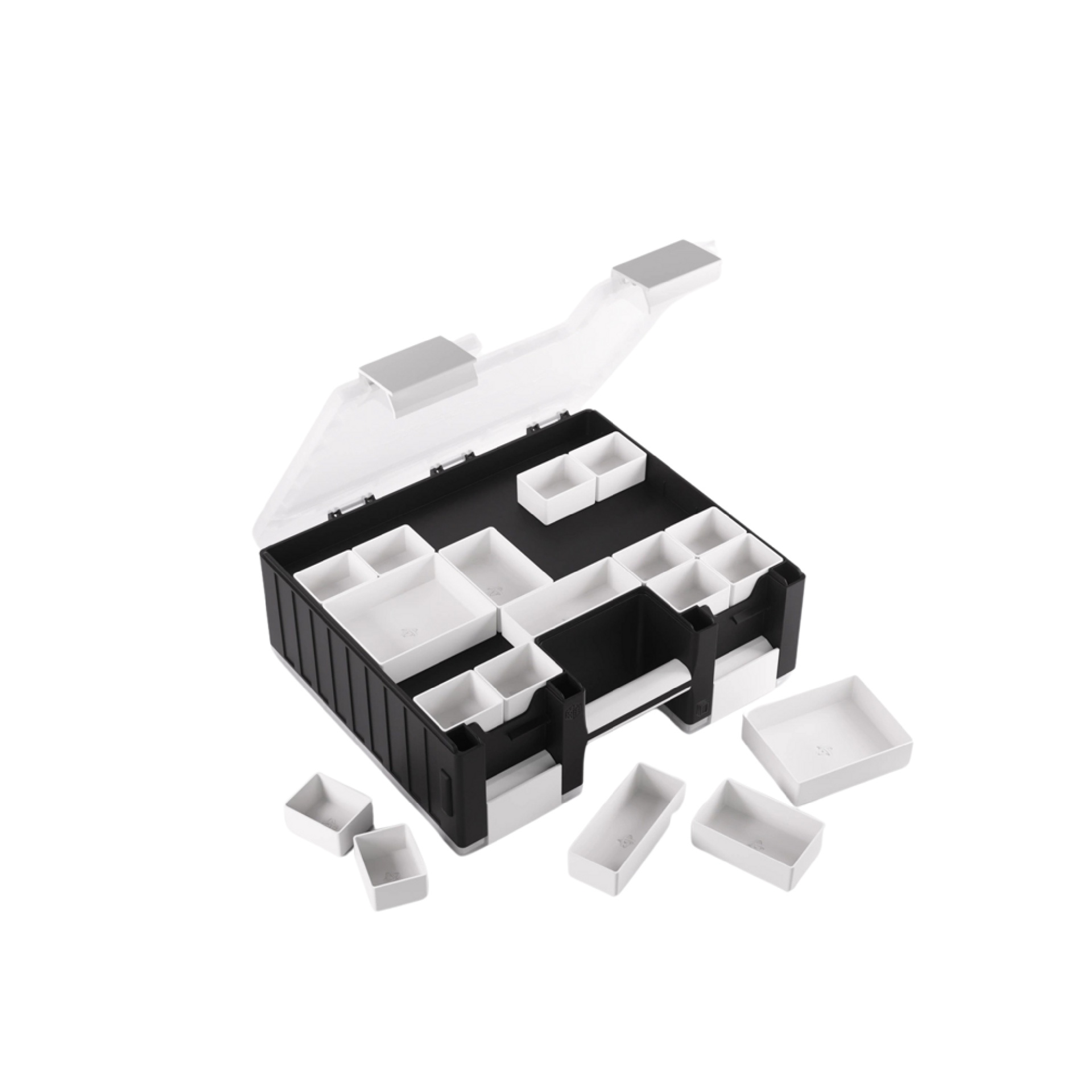 - ACCESSORIES SIDE: 19x removable tray in 5 different sizes