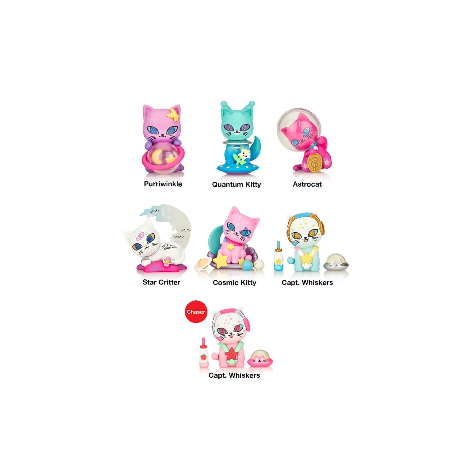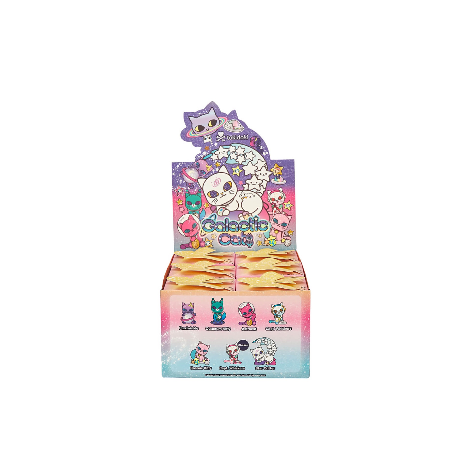 Details: - Each blind box contains one character sealed in a silver foil bag and accessories in pink foil bags. Accessorize your characters as you see on the box or get creative in your own super cute TokiDoki x Hello Kitty and Friends™ Galactic Cats universe! - Each figure stands at approximately 7 cm. - Features may include pearlescent, transparent, glitter details and more! - Characters include: