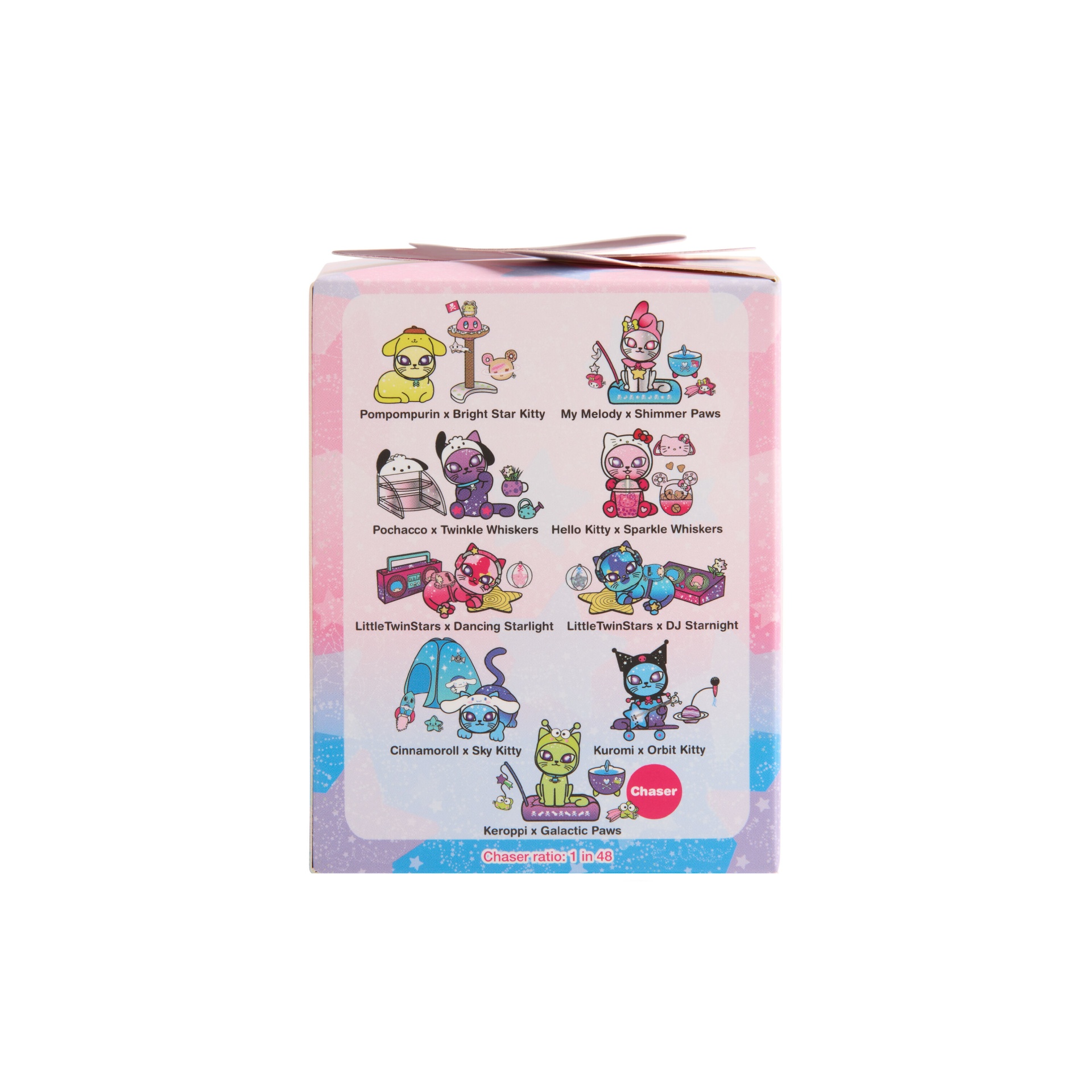 - Pompompurin x Bright Star Kitty (glow in the dark stars!) - Hello Kitty x Sparkle Whiskers - Pochacco x Twinkle Whiskers - My Melody x Shimmer Paws - Kuromi x Orbit Kitty (Guitar and skateboard attach magnetically! Spinning wheels!) - Cinnamoroll x Sky Kitty - LittleTwinStars x Dancing Starlight - LittleTwinStars x DJ Starnight - Keroppi x Galactic Paws (chaser!)