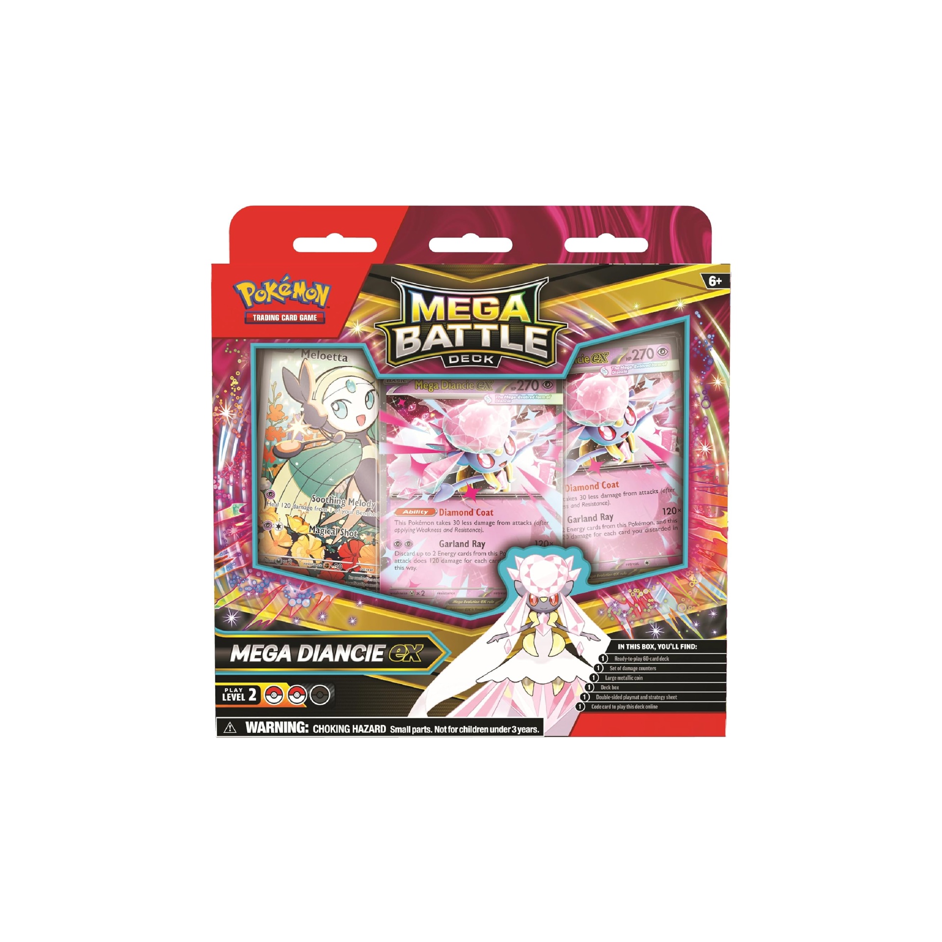 Strong like Diamonds with Mega Diancie ex! Powerful Mega Evolution Pokémon ex are ready to charge onto the battlefield in Pokémon TCG: Mega Battle Decks! Each 60-card deck is led by an exceptional Mega Evolution Pokémon ex and includes everything you need to play right away. Let the battle begin!