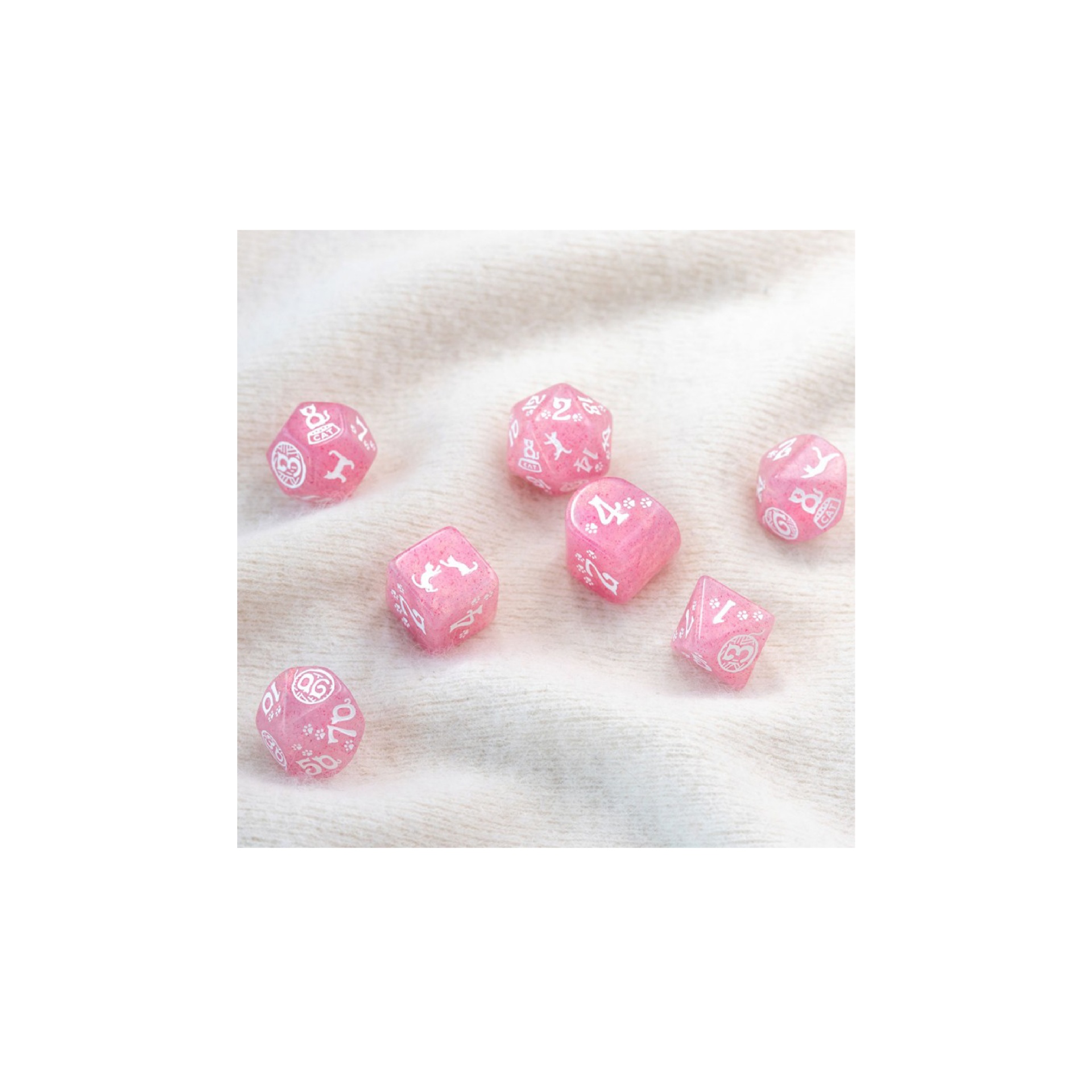 A shining fur — The background of the dice is shimmering-pink (mixed with glitter dust), with white paintings.