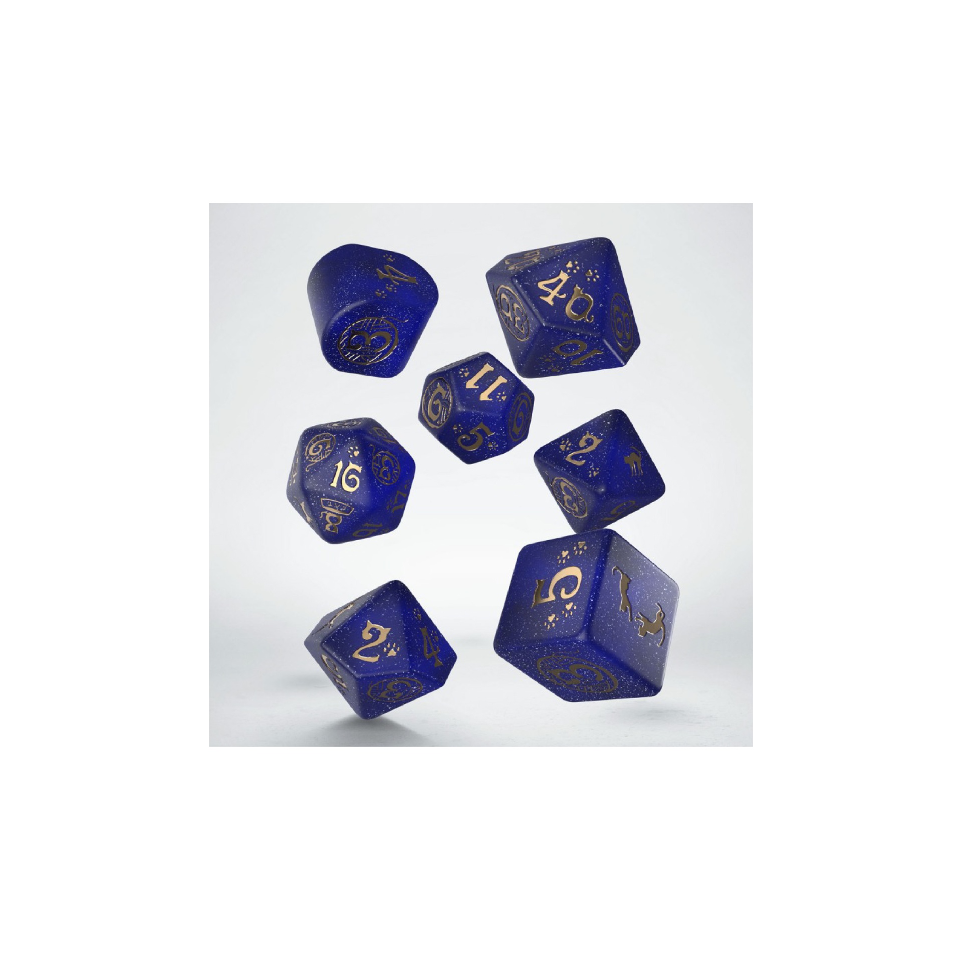 The Cat's Dice Set is remarkable not only because we dedicated it to our furry rulers… err, comrades. First of all, each dice is different - on the highest faces, there are cats indulging themselves as they please. Additionally, some faces show one of their favorite things: a bowl of food or a ball of yarn! When you look closely, you will also see traces of a cat's feet -- because who will forbid them to walk on something freshly painted?