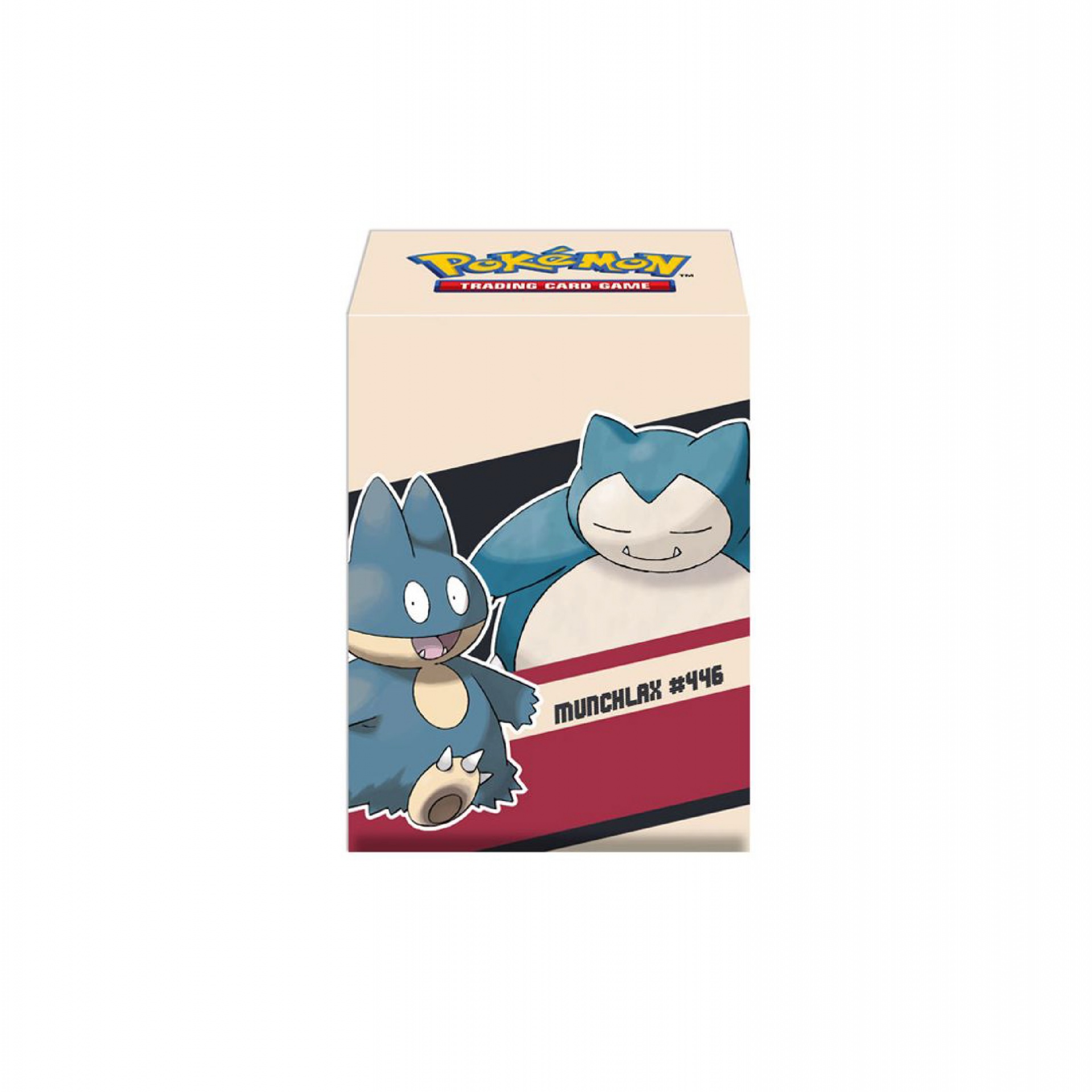 - Officially licensed Pokémon Trading Card Game Deck Box® featuring Snorlax and Munchlax - Holds up to 75 standard size card double-sleeved - Includes one themed deck divider - Self-locking lid keeps card securely stored while also offering easy access - Made with archival-safe, rigid polypropylene materials for safe storage